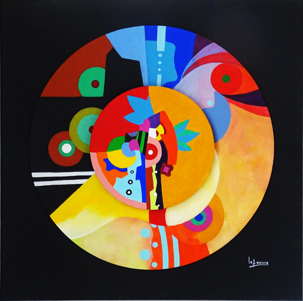 Dans ces séries de tondo, de l’italien « rotondo », tableaux ronds en trois parties superposées, Gilbert LEFEUVRE retranscrit l’harmonie, la tonalité, les vibrations, par un visuel coloré et contrasté. Ces œuvres en volume représentent l’accord parfait qui se compose de trois notes : la fondamentale, la tierce et la quinte juste.